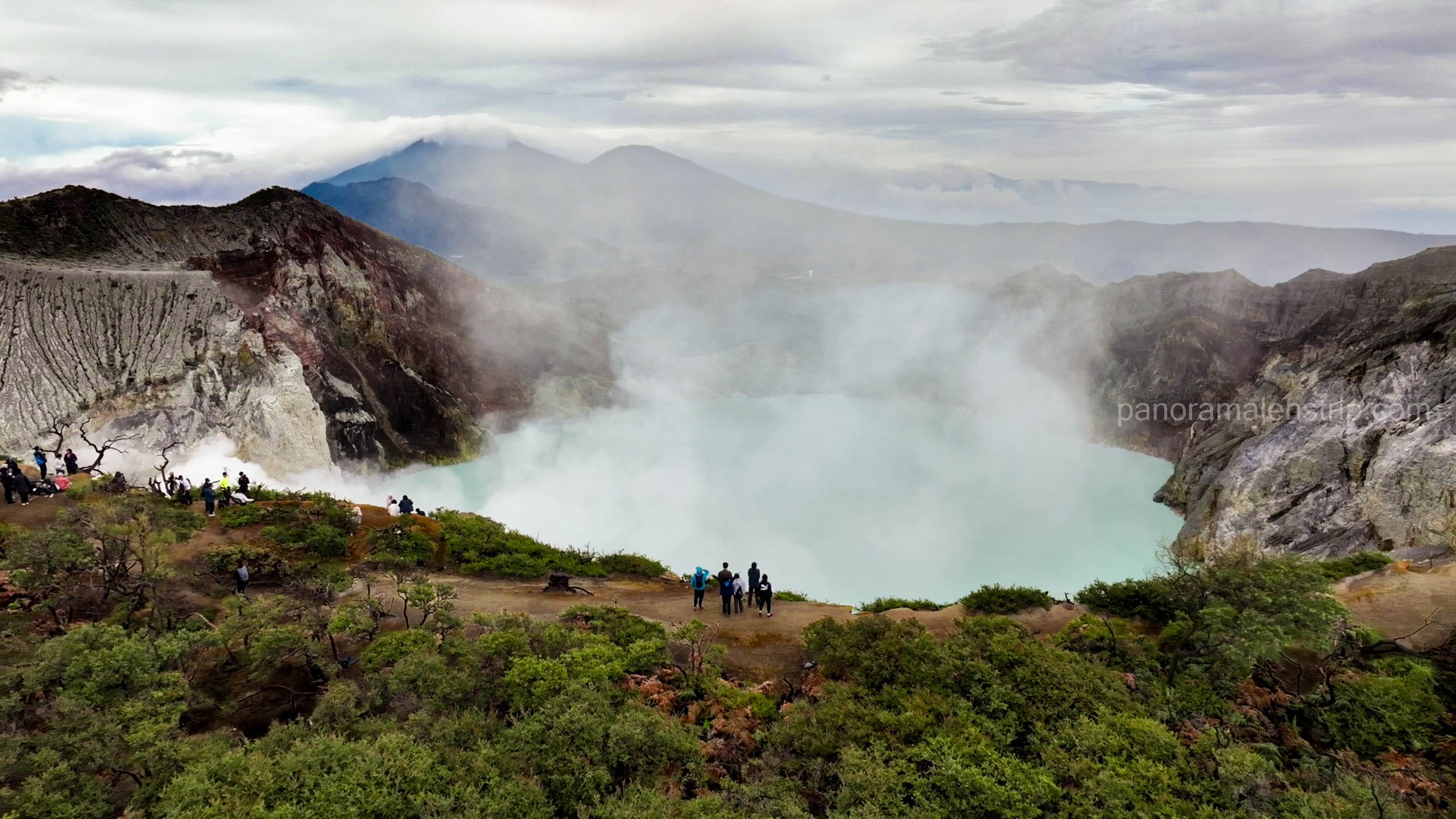 The Perhutani national park entry fee applies to all visitors and must be arranged in advance during peak season. Panorama Lens Trip handles permit acquisition, gas mask provision, and trailhead logistics as part of every guided package.